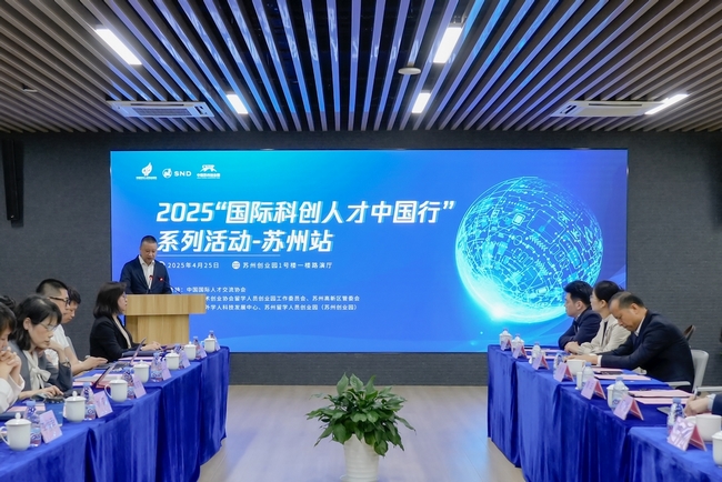 4月25日,2025“國(guó)際科創(chuàng)人才中國(guó)行”蘇州站活動(dòng)在蘇州高新區(qū)蘇州留學(xué)人員創(chuàng)業(yè)園舉辦。蘇州高新區(qū)管委會(huì)副主任沈琰出席活動(dòng)并致辭。